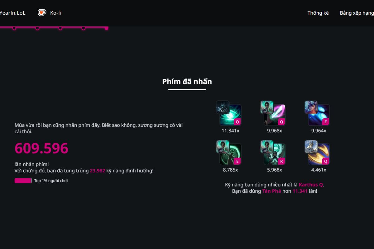 - Dữ liệu thú vị mang tính cá nhân hóa: Các thông tin như kỹ năng được sử dụng nhiều nhất, khung giờ chơi game quen thuộc hoặc những cột mốc đáng nhớ trong quá trình leo rank.