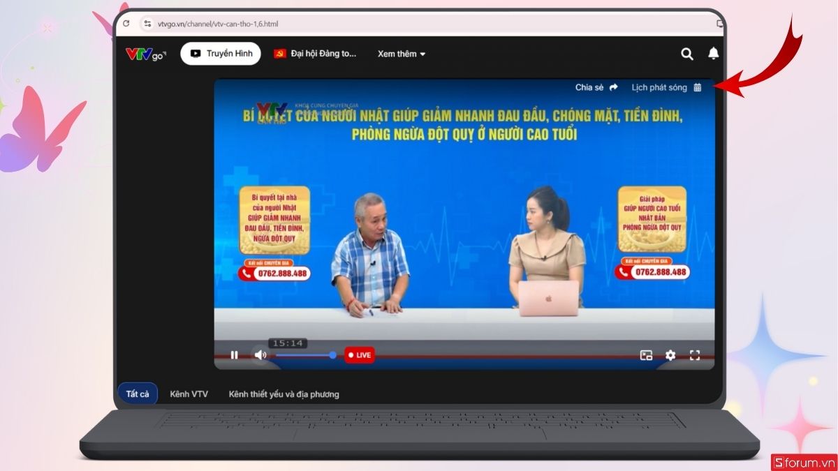 Nhấn vào Lịch phát sóng. Khi đến đúng khung giờ thi đấu, nhấn vào kênh tương ứng để theo dõi trận đấu. Nên truy cập sớm khoảng 10 phút để kiểm tra hình ảnh, âm thanh và tránh tình trạng quá tải khi lượng người xem tăng cao.