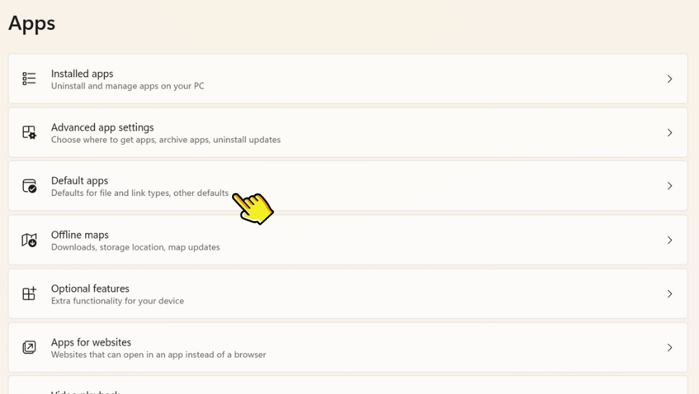 Bước 2: Tại đây hãy chọn tiếp Default apps.