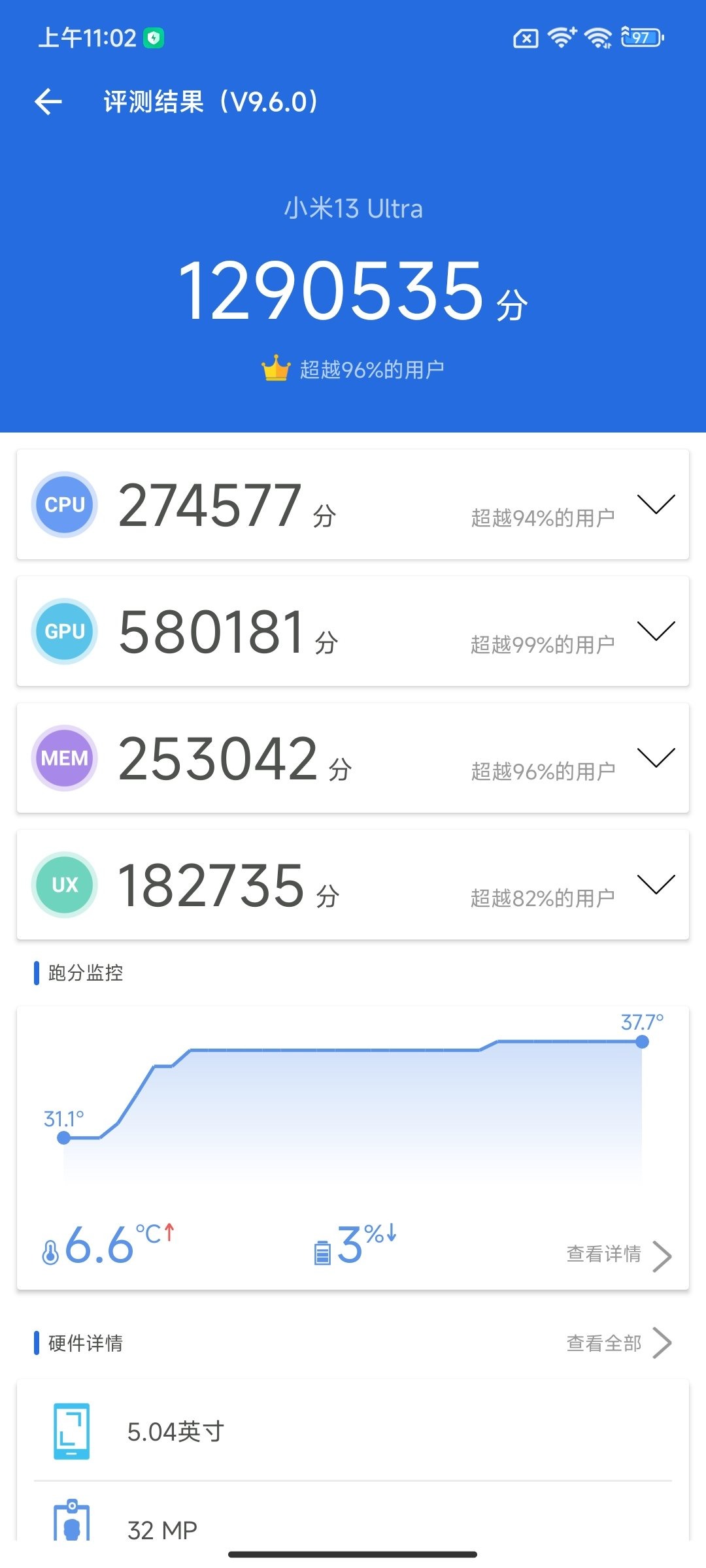 Về hiệu năng, đây cũng là một ưu điểm hàng đầu của Xiaomi 13 Ultra khi máy trang bị con chip Snapdragon 8 Gen 2 mạnh mẽ nhất do Qualcomm phát triển. Máy có RAM lên tới 16GB và bộ nhớ lưu trữ lên tới 1TB, sử dụng chuẩn UFS 4.0 cho tốc độ đọc ghi nhanh. Chấm điểm hiệu năng của chiếc máy này thì máy có điểm số khoảng 1.3 triệu điểm AnTuTu.