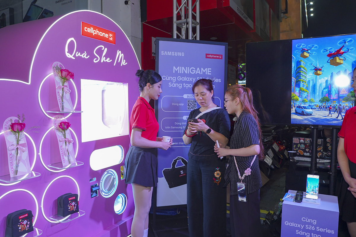 Đúng 22h ngày 5/3/2026, chương trình chính thức diễn ra. Để khuấy động không khí, Cellphone đã mang đến mini game tương tác thú vị “Cùng Galaxy bảo mật tuyệt đối” với sự tham gia nhiệt tình của các quý khách hàng.