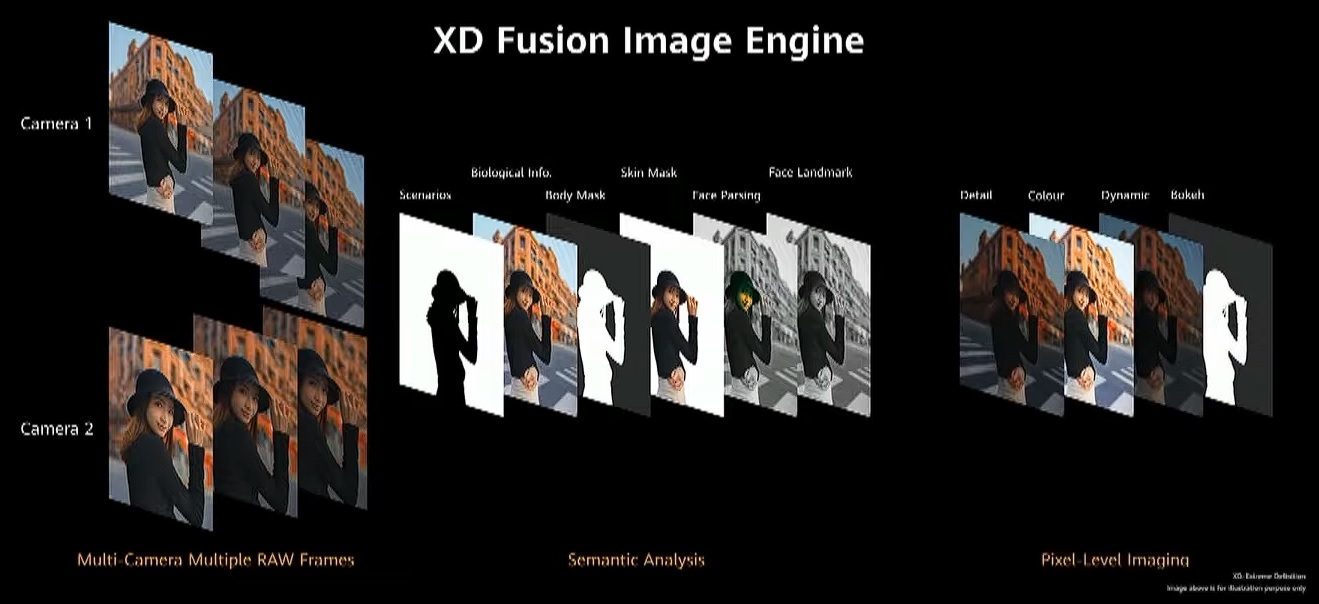 XD Fusion Engine sử dụng sức mạnh kết hợp của ISP và bộ xử lý thần kinh (NPU) trên chip Kirin 990 để chạy các thuật toán xử lý hình ảnh nâng cao. XD Fusion Engine kết hợp đồng thời nhiều khung hình từ camera, sau đó phân tích cảnh vật, nền, chủ thể, từ đó tạo ra hình ảnh chi tiết, thực hiện khử nhiễu cũng như cải tiến màu sắc và dải động.