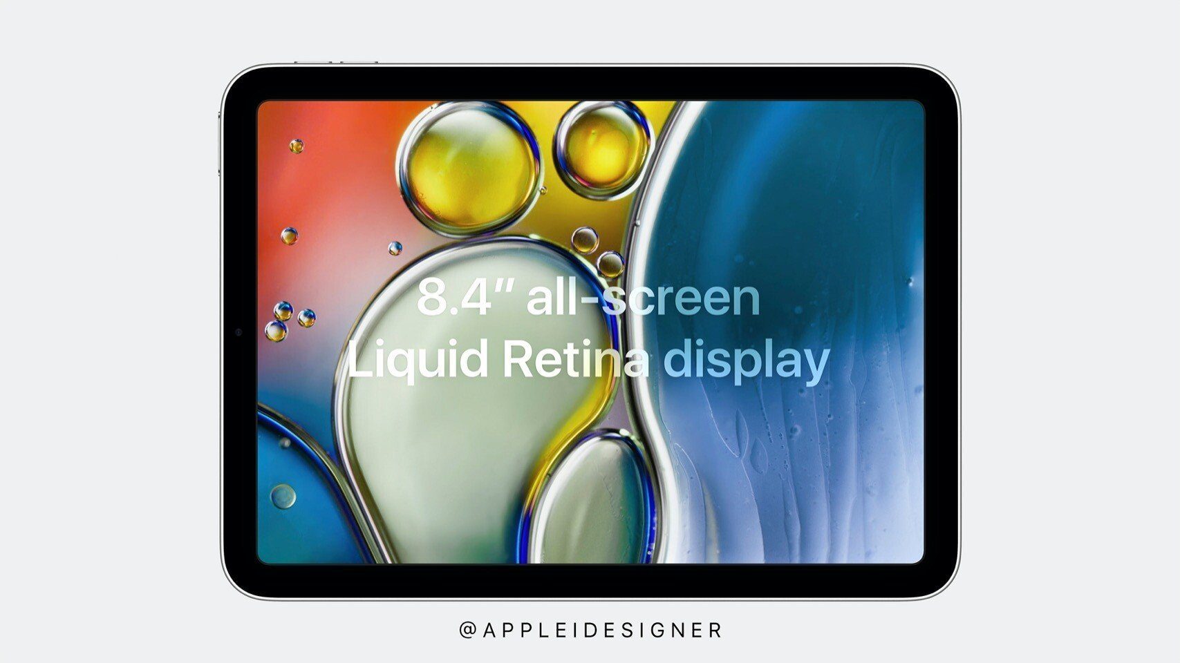 Màn hình của iPad mini 2021 trong concept này có kích thước 8.4 inch, lớn hơn khá nhiều so với 7.9 inch hiện tại.