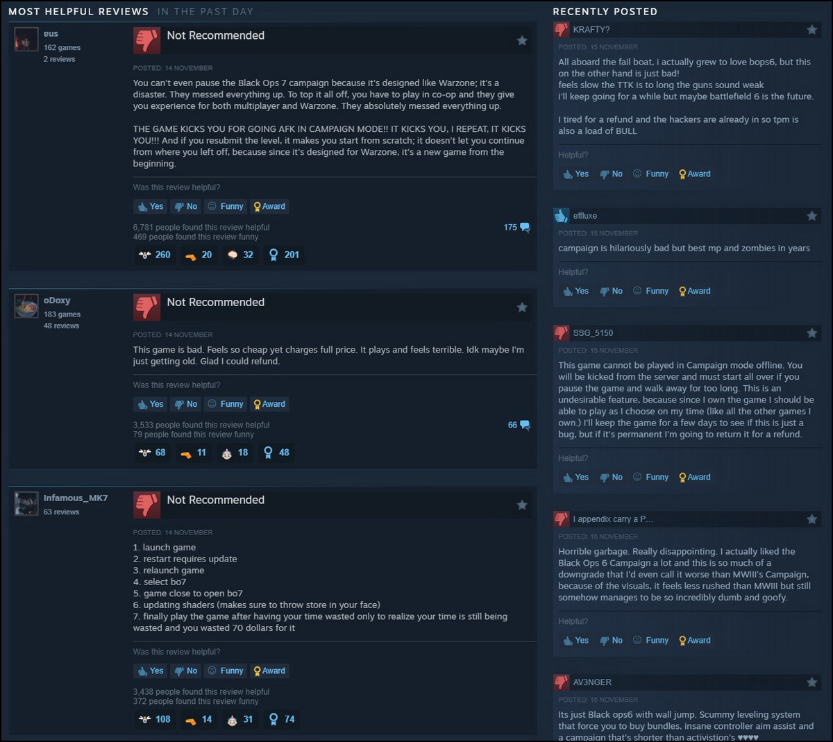Sau khi Battlefield 6 có campaign chỉ được đánh giá ở mức trung bình khá, cộng đồng game thủ mê bắn súng rất trông chờ vào việc Black Ops 7 sẽ mang đến một phần chơi đơn cực chất lượng. Thế nhưng Activision đã làm tất cả họ thất vọng khi tung ra thảm kịch Call of Duty: Black Ops 7 với một phần chơi chiến dịch được đánh giá là "tệ nhất trong lịch sử series" bởi Forbes, Polygon và nhiều reviewer khác.