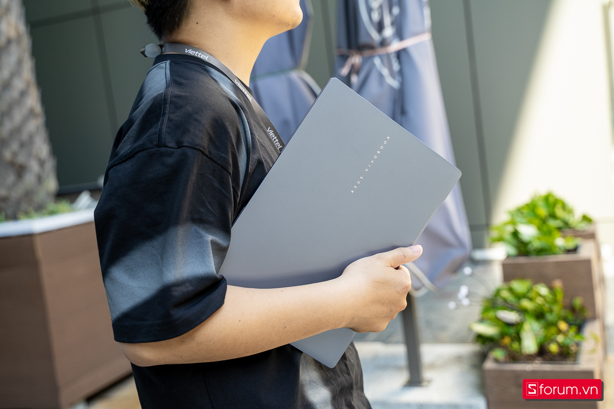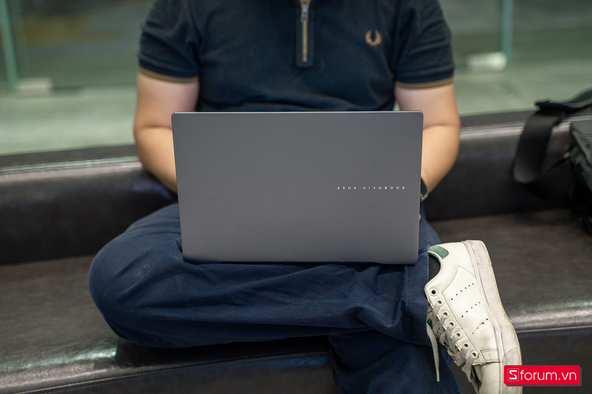 Không chỉ mạnh bên trong, Vivobook S14 còn sở hữu ngoại hình cuốn hút với khung kim loại mỏng 1.59 cm và trọng lượng chỉ 1.35 kg, đủ gọn để mang theo suốt ngày mà không nặng nề.