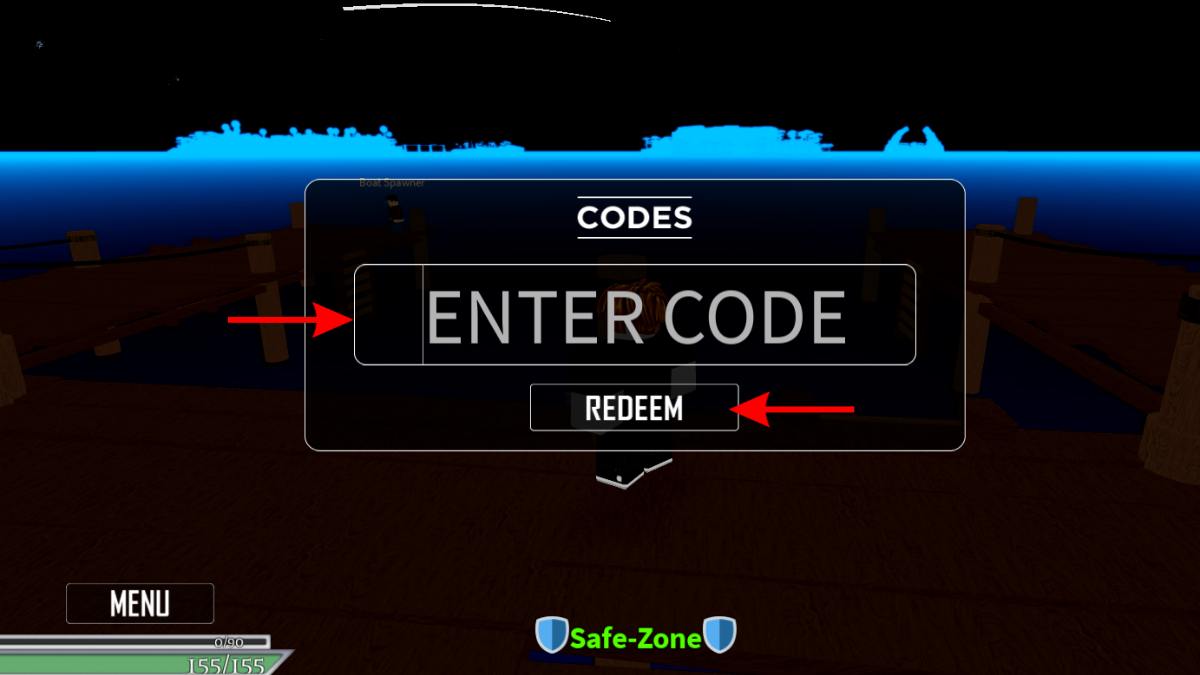 Bước 3: Sau khi chọn “Codes”, bạn sẽ thấy màn hình nhập code hiện ra trên màn hình tiến hành nhập code mới nhất vào ô “ENTER CODE” kiểm tra lại xem code đã đúng chưa nhấn nút “Redeem” để kích hoạt mã.