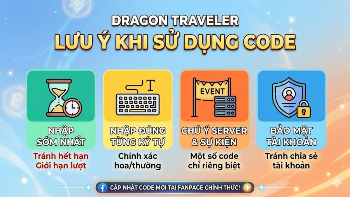 Việc sử dụng code Dragon Traveler 2026 tưởng chừng đơn giản nhưng người chơi vẫn cần chú ý đến nhiều yếu tố quan trọng để đảm bảo nhận thưởng thành công.