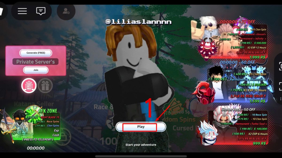 Đầu tiên, bạn cần vào Roblox, tìm kiếm Jujutsu Seas, nhấn Play để bắt đầu chơi game.