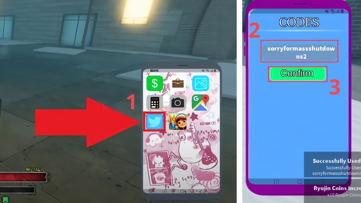 - Bước 3: Nhập mã code Ryujin Roblox vào ô trống rồi nhấn Confirm.