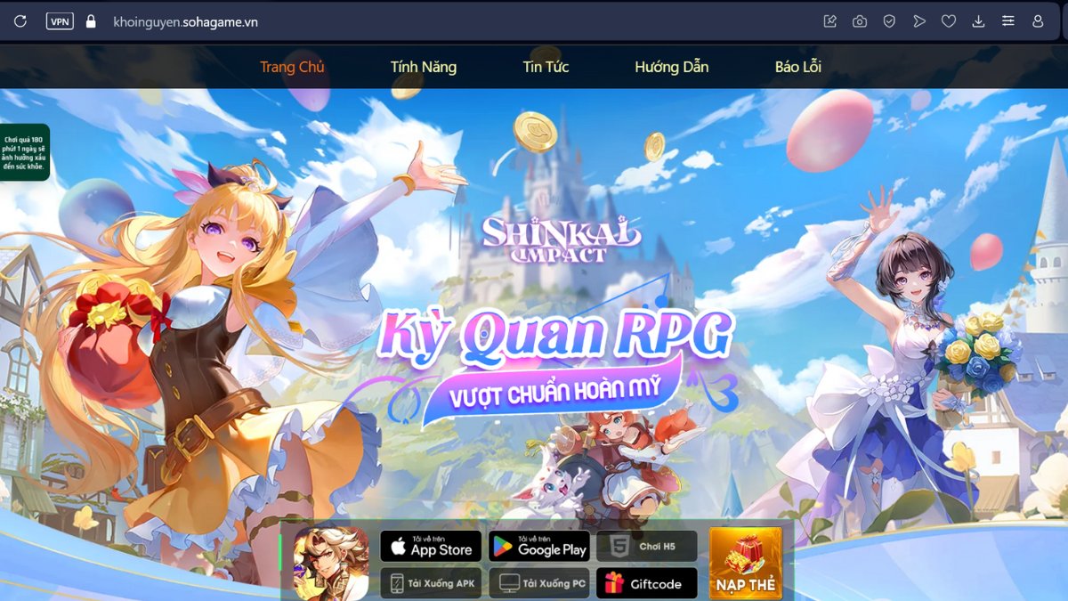 - Bước 1: Vào trang NPH SohaGame tại địa chỉ https://nap.sohagame.vn > Chọn game Shinkai Impact: Khởi Nguyên.