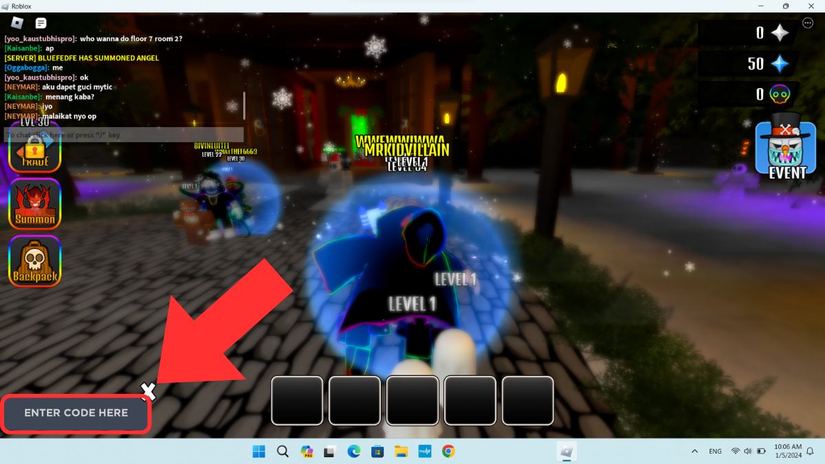 Bước 4: Nhập mã code The House TD mới nhất 2025 chính xác vào ô trống và nhấn 'Enter' để nhận phần thưởng.