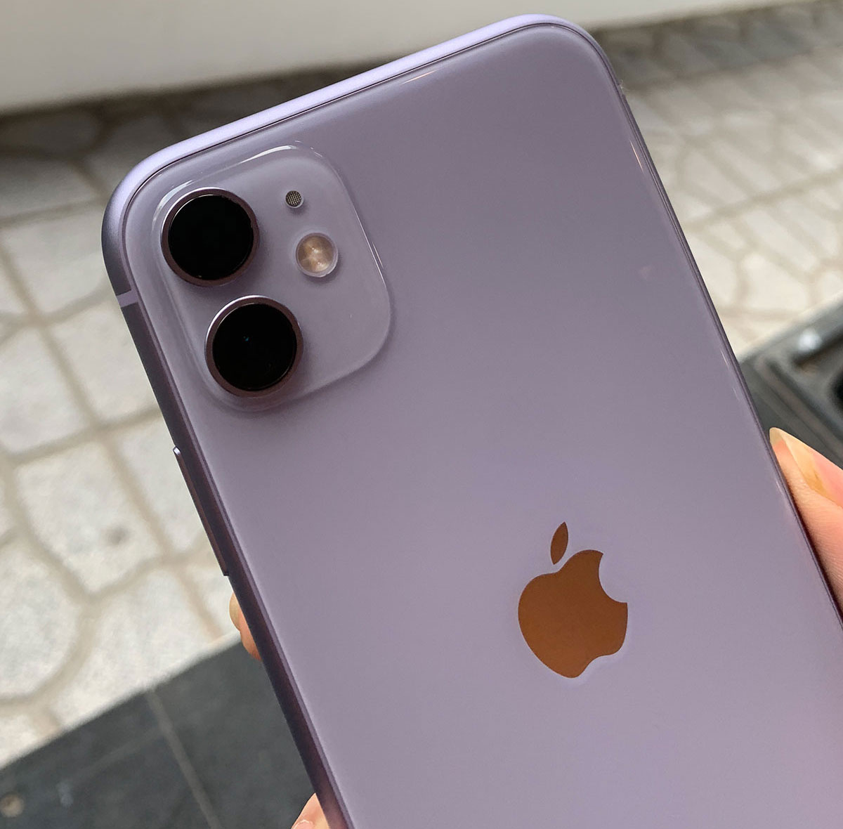 Đầu tiên là chiếc iPhone 11 với dung lượng bộ nhớ trong 256GB và đi kèm mặt lưng màu tím nhạt. Như bạn đọc có thể thấy thì chiếc iPhone mới có thiết kế mặt trước không có nhiều khác biệt so với thế hệ trước với màn hình “tai thỏ”, kích thước 6.1 inch, sử dụng tấm nền LCD và có độ phân giải 828 x 1792 pixels.