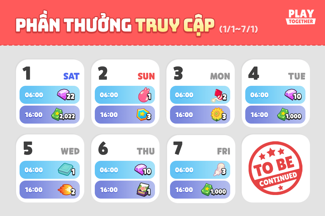 Bạn chỉ cần đăng nhập game Play Together vào các khung giờ mà Nhà phát hành đưa ra và kiểm tra Hộp thư của mình. Quà sẽ được gửi thẳng vào Hộp thư của bạn.