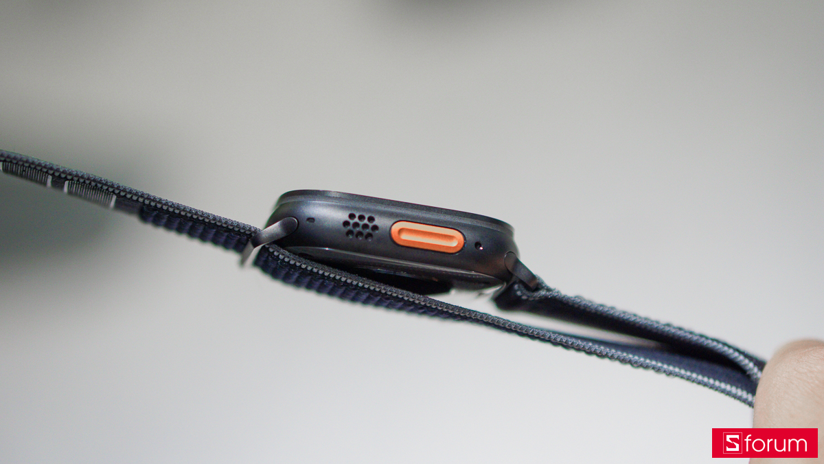 Hệ nút bấm trên Apple Watch Ultra 3 vẫn cho cảm giác sử dụng khá ổn, Digital Crown vẫn cho trải nghiệm sử dụng của mình cực kì mượt mà. Mặt sau của Apple Watch Ultra 3 cũng được làm từ chất liệu gốm và sapphire với thiết kế bầu lên vừa phải, đeo lâu không hề bị cấn tay hay khó chịu.