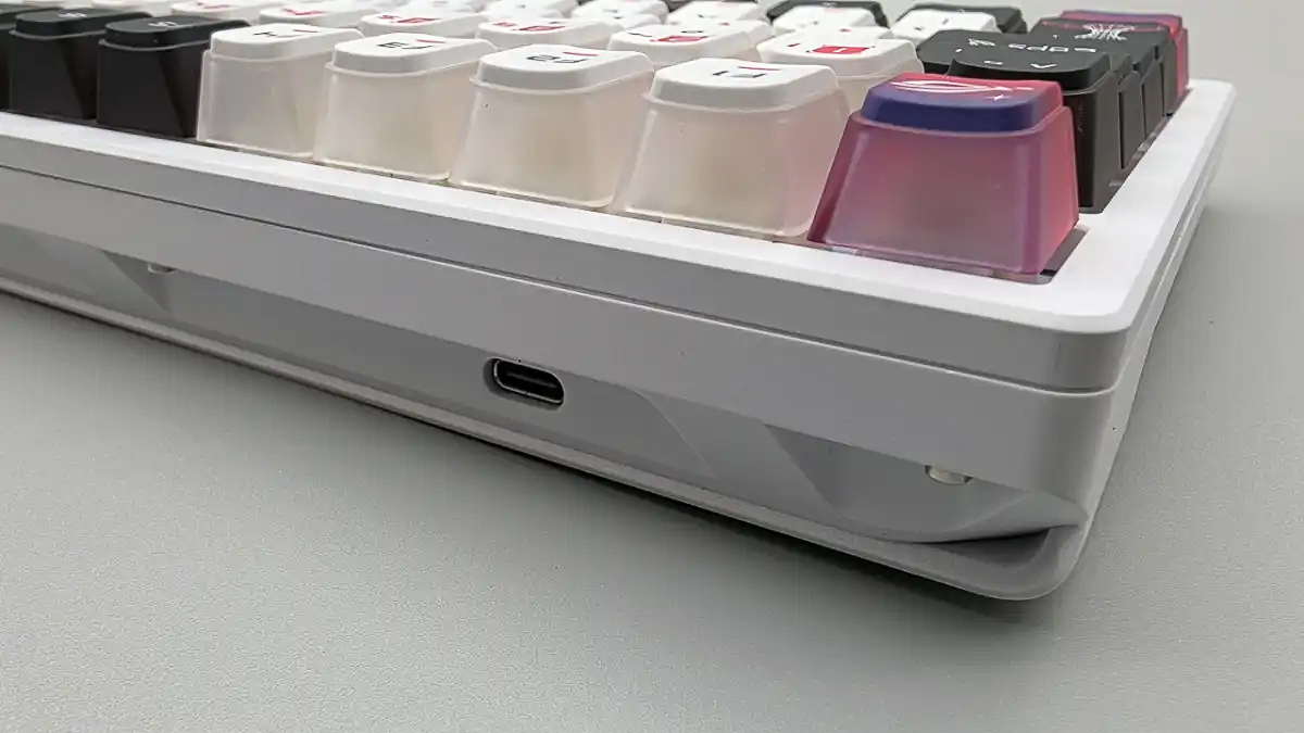 Cụ thể, năm nay ASUS không còn sử dụng keycap profile Cherry truyền thống giống như trên ROG Azoth nữa, mà là một dạng keycap có thiết kế đặc biệt với khung hình vuông và các góc được bo tròn, chiều cao vừa phải và có phần thân một nửa mờ ảo, một nửa là nhựa đặc, đem lại khả năng xuyên LED cực kỳ đẹp và ấn tượng.