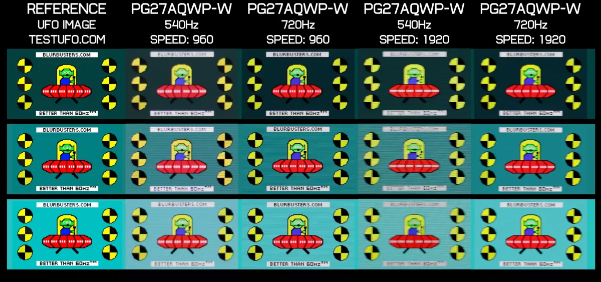 Các tính năng ELMB (chèn khung đen) và OLED chống nháy giúp giảm hiện tượng mờ và nháy khi bật VRR, nâng cao trải nghiệm chơi game tốc độ cao. Chế độ kép 720p 720Hz chỉ nên sử dụng trong những tình huống cạnh tranh cực kỳ khốc liệt còn ở 1440p 540Hz đã mang lại độ mượt cực cao, đủ cho hầu hết game thủ.