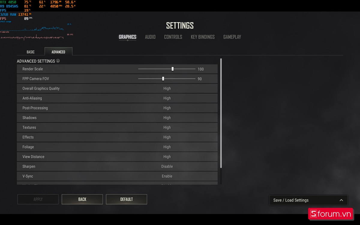 Chuyển sang trải nghiệm PUBG, khi thiết lập đồ họa ở mức cao và máy đã đạt đến ngưỡng sức mạnh của mình. Khi mà RTX4050 đã chạy ở mức tối đa nhưng chỉ có thể gánh được tựa game này mức trung bình 60 Fps.