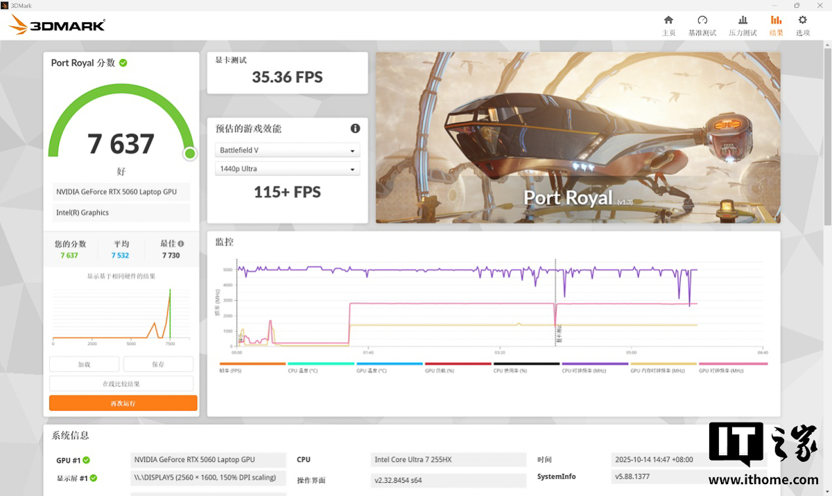 Trong bài kiểm tra Ray Tracing với 3DMark Port Royal, GPU đạt được 7,637 điểm - ổn định và mạnh mẽ để đem lại trải nghiệm chơi game 2K Ray Tracing ổn định cho mọi game thủ.