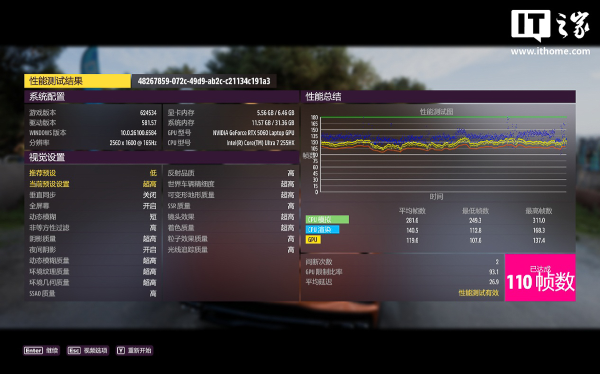 Forza Horizon 5 là một tựa game ngốn nhiều VRAM, nhưng cho dù là vậy thì ASUS TUF Gaming 6 Pro Core Edition vẫn có thể chơi rất mượt mà ở độ phân giải 2K, max setting với tốc độ khung hình tối đa là 110 FPS và thấp nhất là 90 FPS.