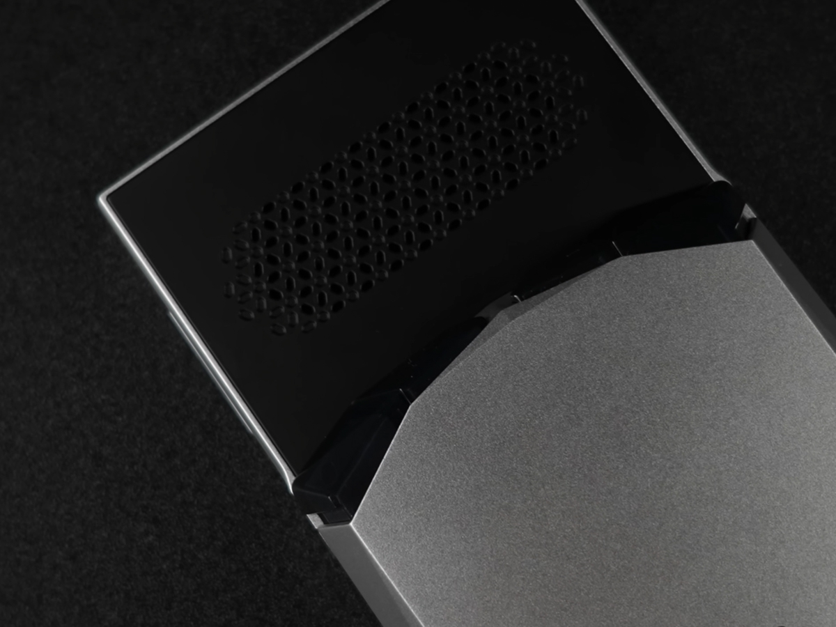 Sự cao cấp của Pocket VERT được thể hiện rõ nét ở mặt lưng với tấm ốp bằng nhôm mang lại cảm giác cầm nắm mát lạnh và cứng cáp. Phía trên cùng là khe hút gió cho hệ thống tản nhiệt chủ động, một trang bị hiếm thấy trên các máy retro dạng dọc.