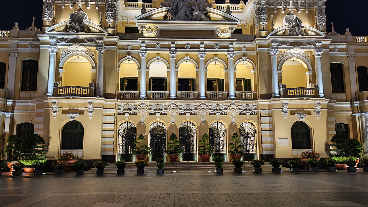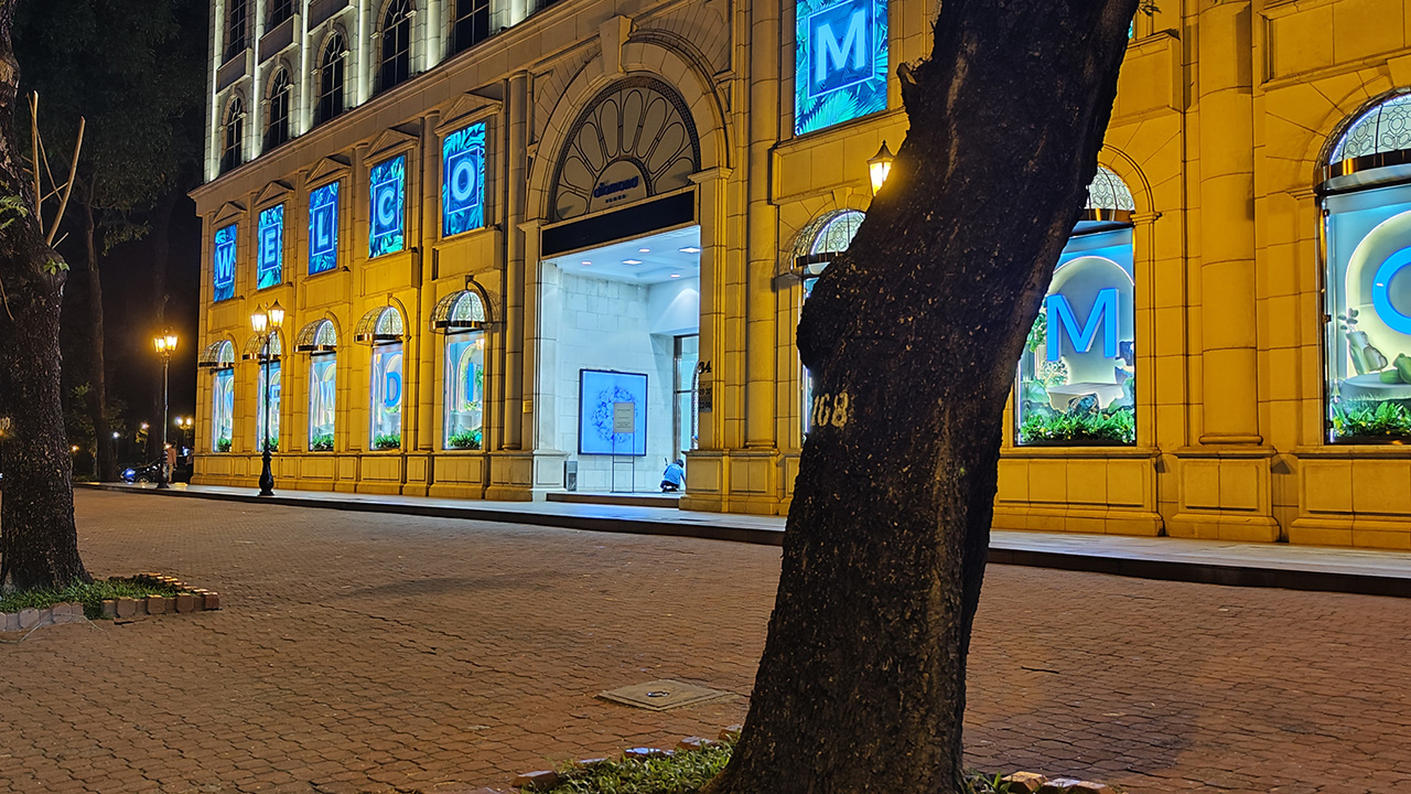 Chuyển sang địa điểm có nhiều ánh đèn gần hơn và lúc này cũng tối hơn, cả chế độ tự động và chụp đêm của Xiaomi 12T Pro vẫn thể hiện khá ấn tượng. Màu sắc tái tạo chân thật với màu tường vàng rực rỡ và chi tiết tốt. Tuy nhiên, ảnh chụp từ chế độ tự động vẫn cho nhiều ánh sáng hơn nên chi tiết trên những họa tiết trên tường có phần bị lẹm vào nhau.