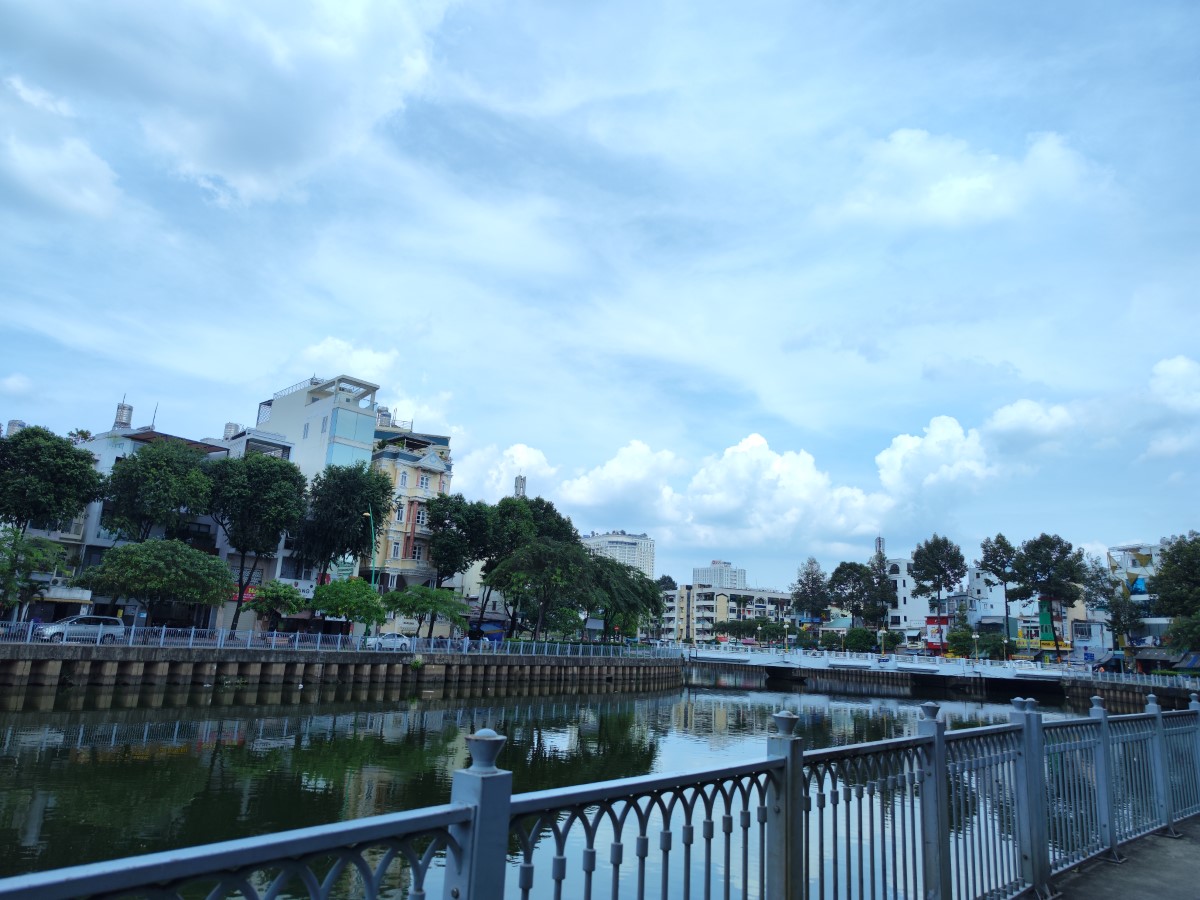 Ngoài ra, ảnh chụp tòa nhà màu vàng khi vùng trời dịu đi và mát mẻ thì tổng thể bức ảnh lại bị ngả sang màu xanh khá nhiều. Màu vàng tái tạo trên ảnh bị nhợt nhạt ở cả 3 chế độ, có thể do việc camera bị ám xanh khá nặng, đặc biệt khi mình chụp ở những địa điểm có nhiều vùng trời như bên bờ kênh. Còn lại những điểm mạnh khác như chi tiết, khả năng thu sáng đều thể hiện rất tốt.