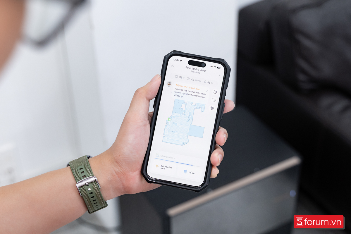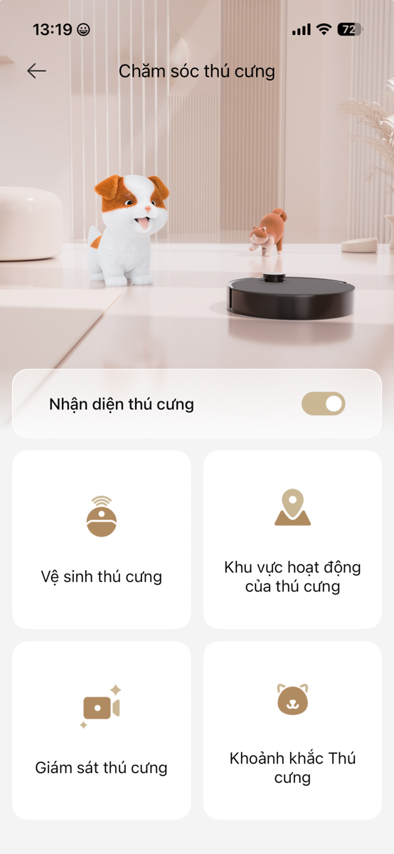 Chế độ “Chăm sóc thú cưng” là điểm cộng lớn. App có thể phát hiện và khoanh vùng khu vực thú cưng hay đi lại, ưu tiên dọn khu đó. Ngoài ra, bạn có thể xem trực tiếp camera, chụp ảnh hoặc bật chế độ theo dõi chuyển động để robot tự động lưu lại khoảnh khắc của pet. Với người nuôi mèo hoặc chó như mình, đây là tính năng “nhỏ mà vui” vì có thể xem lại những pha nghịch ngợm ngay trên điện thoại.