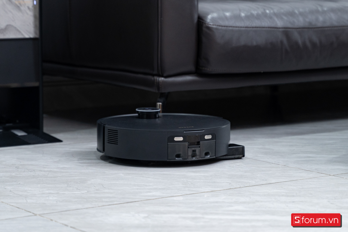 Cụm LiDAR phía trên có thể tự hạ thấp khi đi qua khu vực trần thấp như gầm bàn hoặc sofa, giúp chiều cao tổng thể giảm còn khoảng 9,7cm. Trong căn hộ của mình, robot dễ dàng len vào gần như mọi gầm bàn, chỉ hơi vướng với tủ quá thấp.