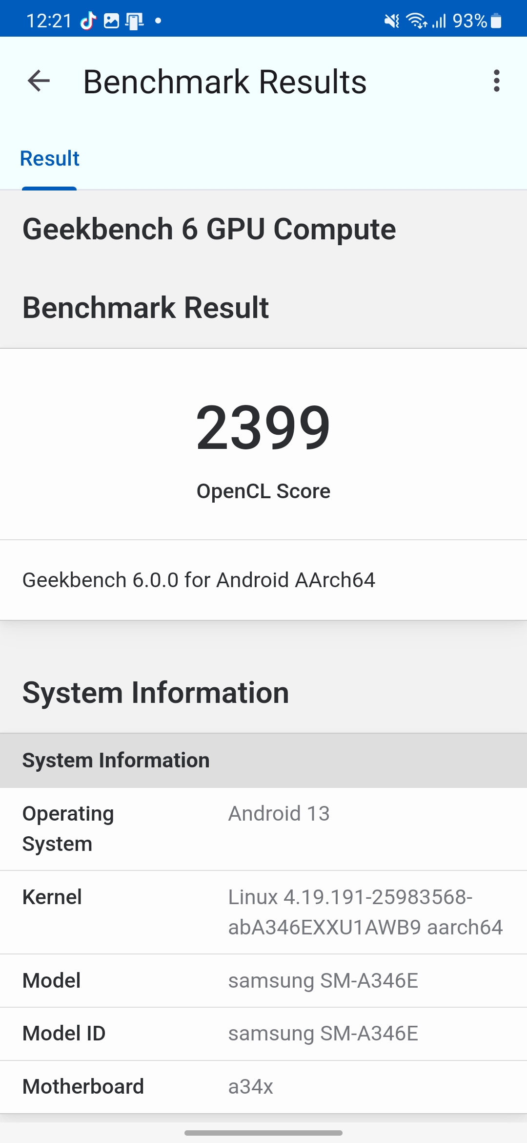 Galaxy A34 5G được trang bị bộ vi xử lý Dimensity 1080 được sản xuất trên tiến trình 6nm với 8 nhân gồm: 2 nhân 2.6 GHz Cortex-A78 và 6 nhân 2.0 GHz Cortex-A55 mang lại hiệu năng mạnh mẽ trong phân khúc. Kiểm tra nhanh thông qua các phần mềm Benchmark chuyên dụng như: Antutu Benchmark, Geekbench 6 thu được kết quả như hình:
