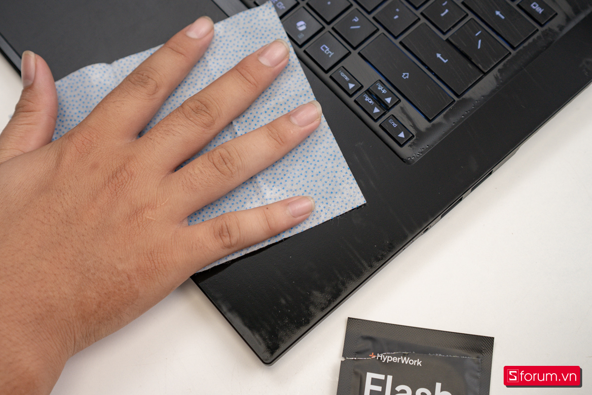 Một lưu ý nhỏ là mặt C màu tối khá dễ bám vân tay. Tiện mình vừa săn sale bộ 20 khăn Flash Wipe của Hyperwork chỉ hơn 100k, bộ được chia theo từng gói nhỏ lẻ và rất tiện mang theo. thì thấy lau sạch khá nhanh, đặc biệt phần mặt thô với các hạt li ti rất hiệu quả khi xử lý bụi bám lì.