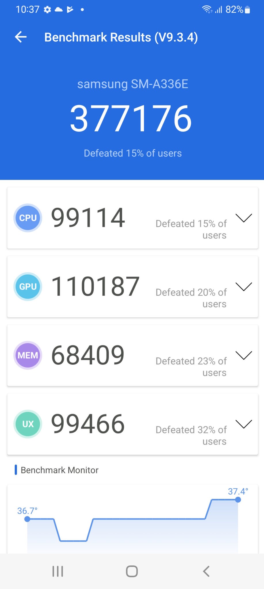 Nhìn chung với mức điểm số này thì Galaxy A34 5G có thể chiến tốt các tựa game MOBA và FPS ở mức đồ họa trung bình cao một cách mượt mà.