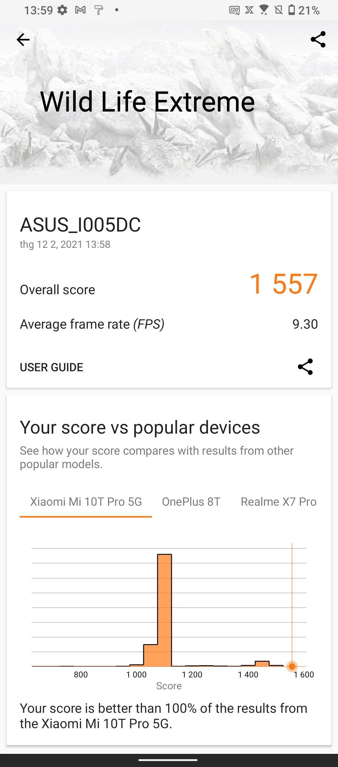 Sở hữu cấu hình thuộc hàng khủng, ASUS ROG Phone 5S dễ dàng ghi được số điểm ấn tượng trong tất cả các công cụ benchmark. Tuy vậy, nếu xét riêng ở điểm Geekbench, Snapdragon 888+ tỏ ra vẫn còn thua xa Apple A15 Bionic vốn đạt trên dưới 4600 điểm đa nhân và 1700 điểm đơn nhân. Với thử nghiệm đồ họa với 3DMark Wild Life Extreme, A15 cũng vượt trội hoàn toàn với số điểm khoảng 2500 với bản 4 GPU (iPhone 13 mini và iPhone 13) và khoảng 2900 điểm với bản 5 GPU.