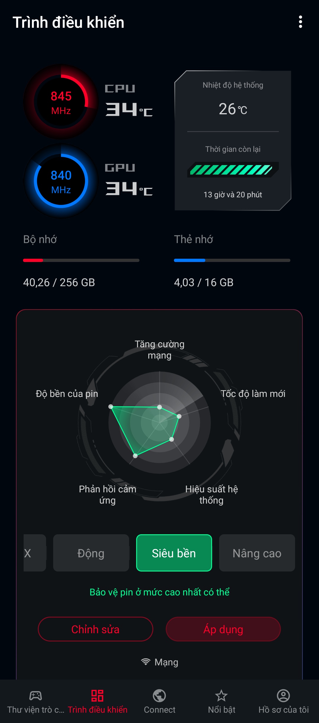 Ngay từ khu vực cài đặt nhanh, ASUS cũng trang bị sẵn một 'chế độ X' giúp tối ưu tài nguyên hệ thống cho việc chơi game. Bạn có thể tùy biến hệ thống sâu hơn, tùy biến logo mặt sau máy và nhiều thứ khác thông qua ứng dụng Armoury Crate.