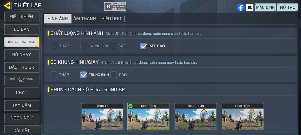 Tương tự với PUBG Mobile, tựa game này có hơi quá sức với em nó một chút với thiết lập cấu hình cao nhất mình có thể thiết lập được là mức cân bằng, tốc độ khung hình ở mức Trung.