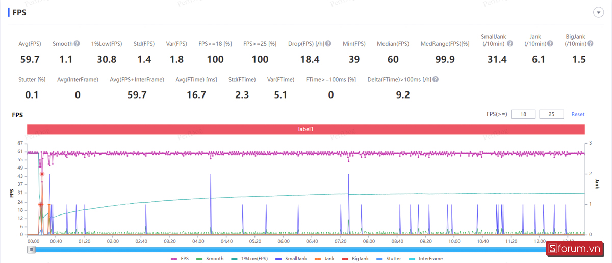 Bạn có thể tham khảo biểu đồ FPS mà mình đã test ở dưới đây: