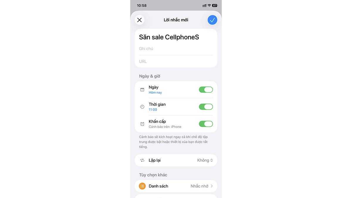 Tính năng ấn tượng đầu tiên mà mình đánh giá cao trong bản cập nhật iOS 26.2 chính là Báo thức trong nhắc nhở. Nó sẽ đặc biệt hữu ích dành cho những ai có “não cá vàng”.