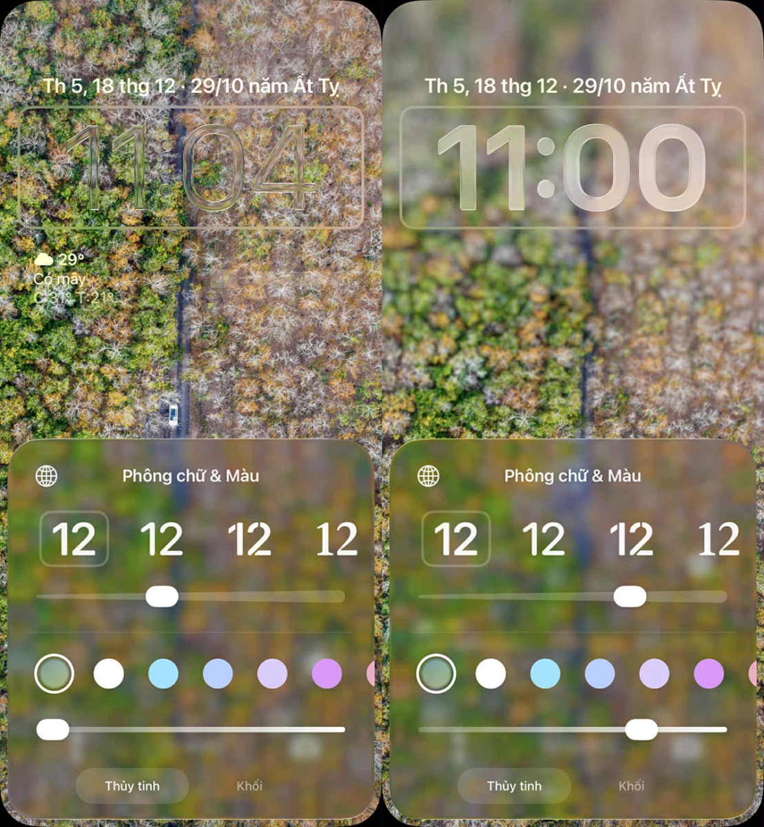 Một thay đổi thú vị khác mà iOS 26.2 khiến mình thích thú đó là khả năng điều chỉnh độ trong suốt của đồng hồ trên màn hình khóa. Thay đổi nhỏ nhưng mang lại khác biệt rõ rệt, giúp giao diện trở nên hài hòa hơn và dễ dàng cá nhân hóa theo “gu thẩm mỹ” riêng của mỗi thời. Mình khá thích sự linh hoạt này vì nó cho phép thể hiện cá tính ngay trên chiếc iPhone hằng ngày.