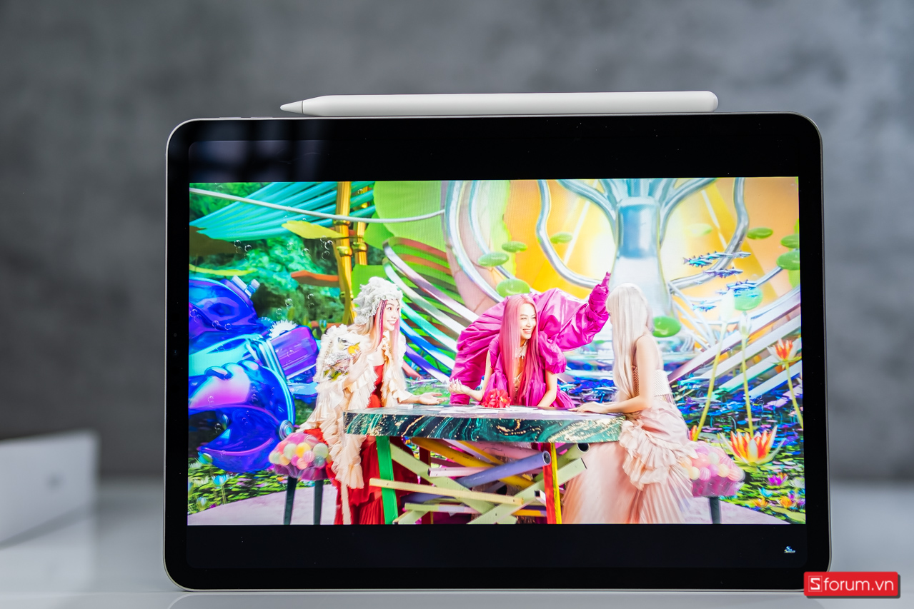 Về màn hình, hơi đáng tiếc khi iPad Pro M2 bản 11 inch vẫn chỉ dùng tấm nền LCD thông thường, tấm nền mini LED vẫn độc quyền cho bản 12.9 inch tuy nhiên nó vẫn cho chất lượng hiển thị tuyệt vời. Với độ sáng khá cao, gam màu rộng P3, tần số 120Hz đáp ứng tốt mọi trải nghiệm của người dùng.