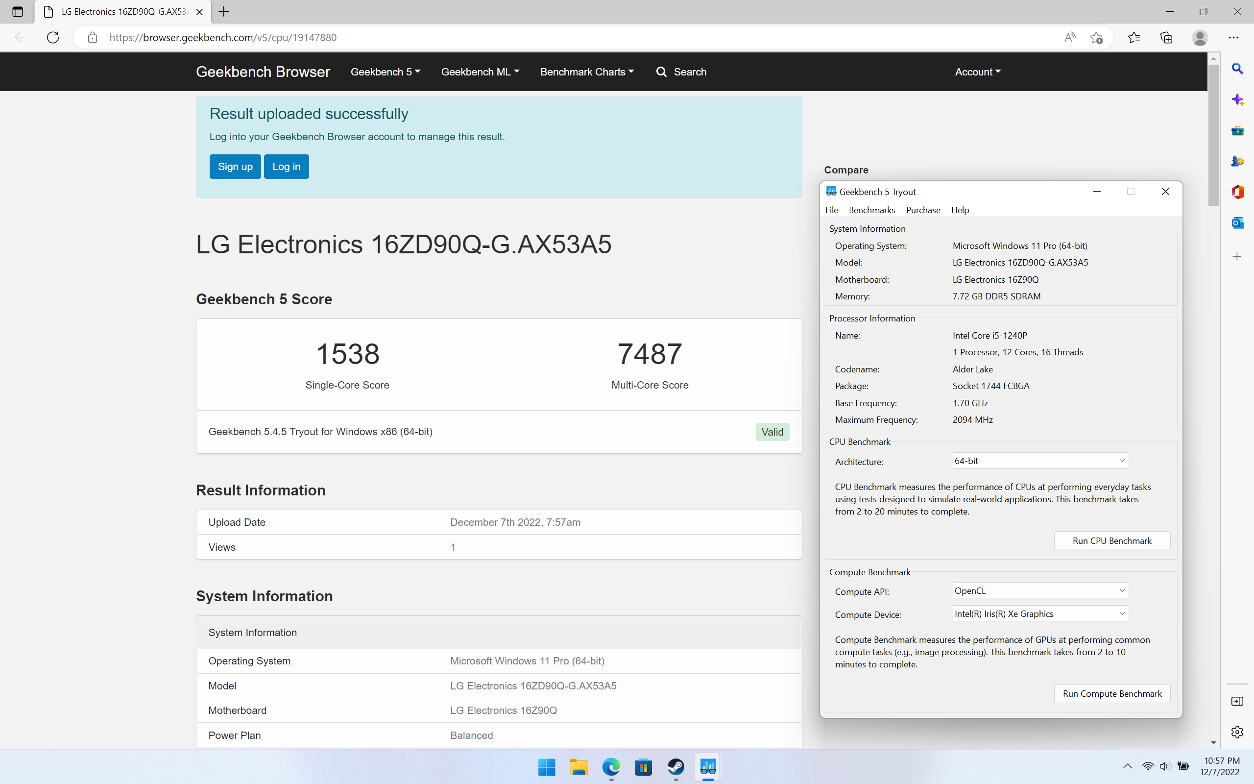 Cấu hình của bản LG gram 16 inch 2022 trong bài viết