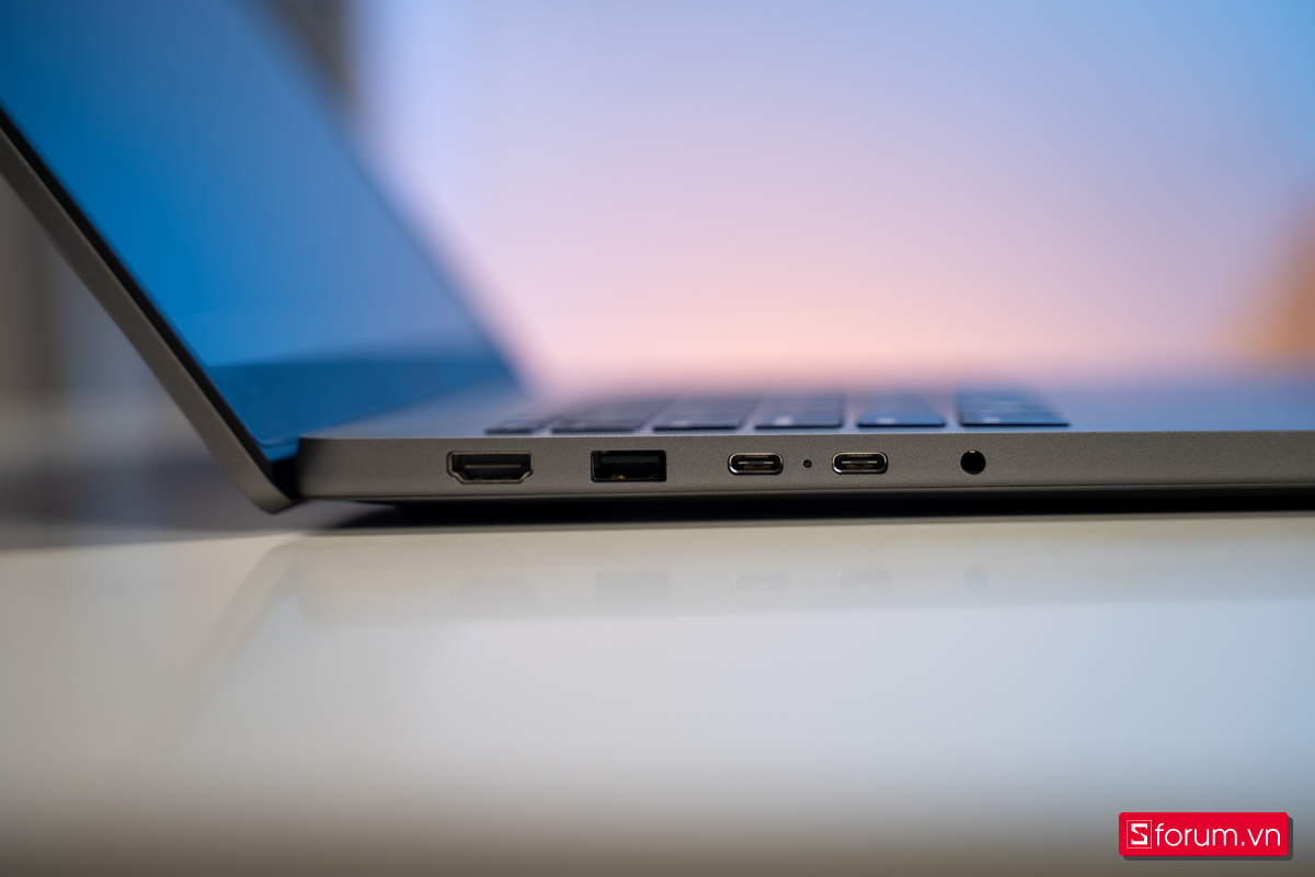 Cạnh trái của LG Gram Book được trang bị tổng cộng một cổng HDMI, hai cổng USB-A 3.2, một cổng cắm 3.5mm, hai cổng USB Type-C hỗ trợ chuẩn USB 3.2 Gen 2x1 + giao thức sạc Power Delivery. Một điểm cộng phải kể đến chính là cổng HDMI - đây là một giao thức đang dần bị loại bỏ theo xu thế thị trường ngày nay bởi sự linh hoạt và tiện lợi của cổng Type-C. Tuy vậy, LG vẫn chu đáo trang bị giao thức truyền thống này giúp việc xuất hình trở nên linh hoạt hơn, tránh bị phụ thuộc vào dock rời.