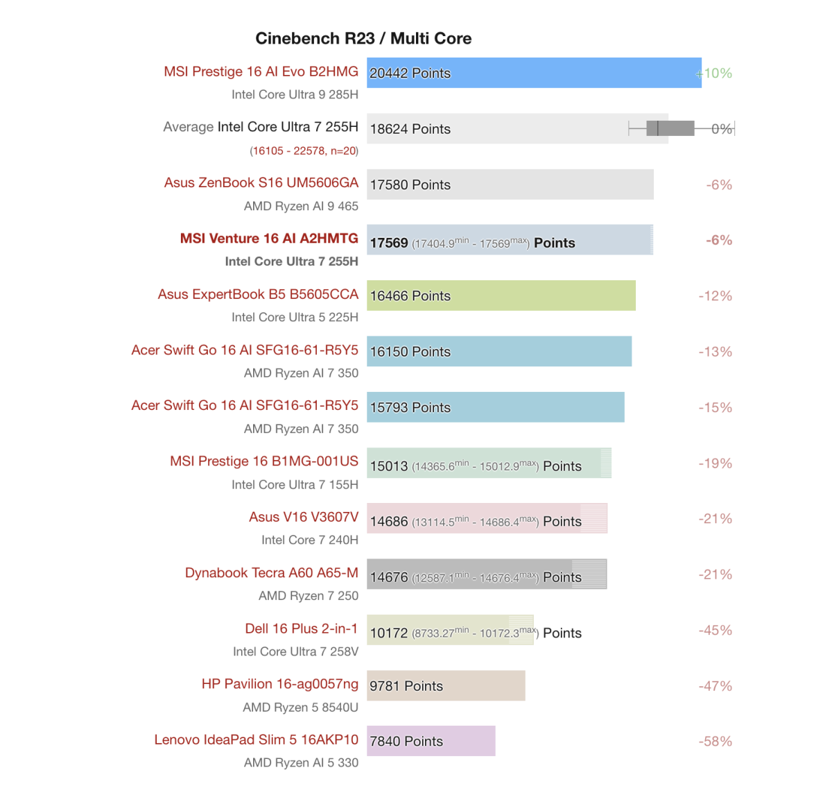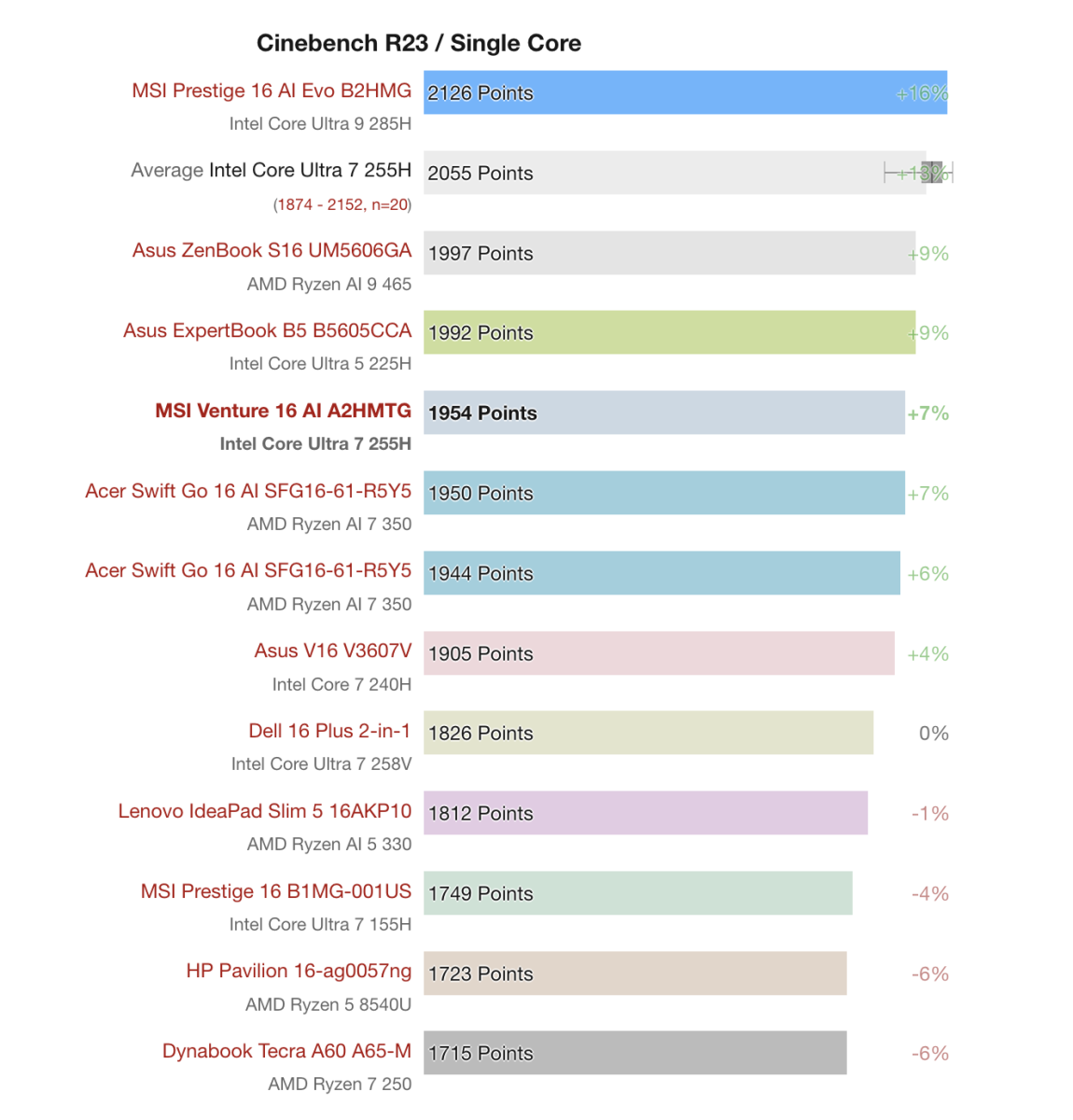 MSI Venture 16 AI A2HMTG được trang bị Intel Core Ultra 7 255H, mang lại hiệu năng ở mức khá trong phân khúc laptop văn phòng hiệu năng cao. Con chip này hướng đến khả năng xử lý đa nhiệm và các tác vụ nặng vừa phải, thay vì tập trung thuần vào hiệu năng đơn nhân.