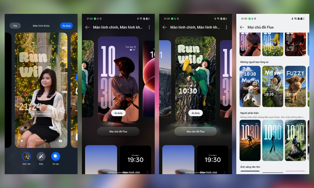Ở màn hình khoá, ColorOS 16 cung cấp rất nhiều "chủ đề" mới lạ như "Flux", cho phép người dùng thay đổi font chữ, kiểu đồng hồ, hay thậm chí tạo các hình nền thông minh. Có thể nói những thay đổi này mang đến cho người dùng trải nghiệm sử dụng mới mẻ và thú vị hơn rất nhiều.