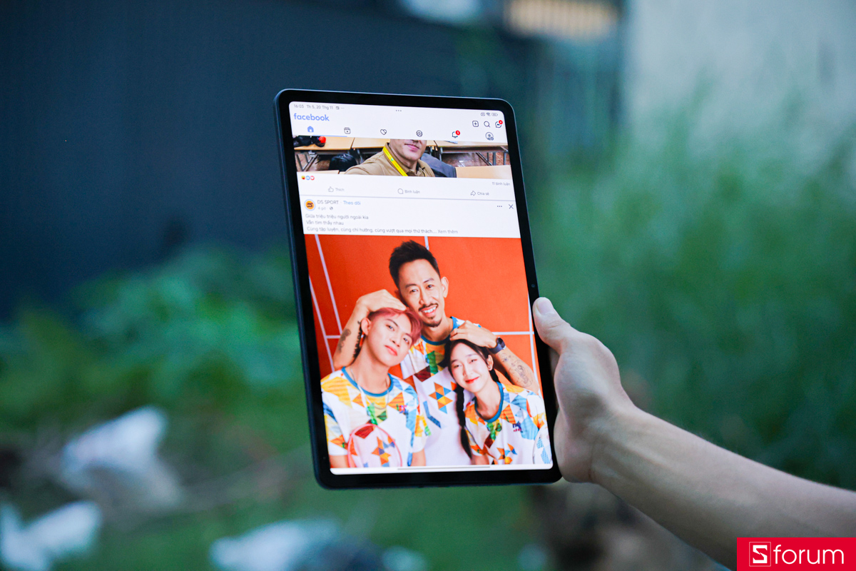 Màn hình hỗ trợ tần số quét 120Hz, cho cảm giác vuốt chạm mượt mà và phản hồi nhanh. Độ sáng tối đa 600 nits khá đủ cho môi trường trong nhà hoặc quán cà phê. Tuy nhiên, khi sử dụng ngoài trời nắng gắt thì nội dung hơi khó nhìn, gây chút bất tiện trong trải nghiệm sử dụng.