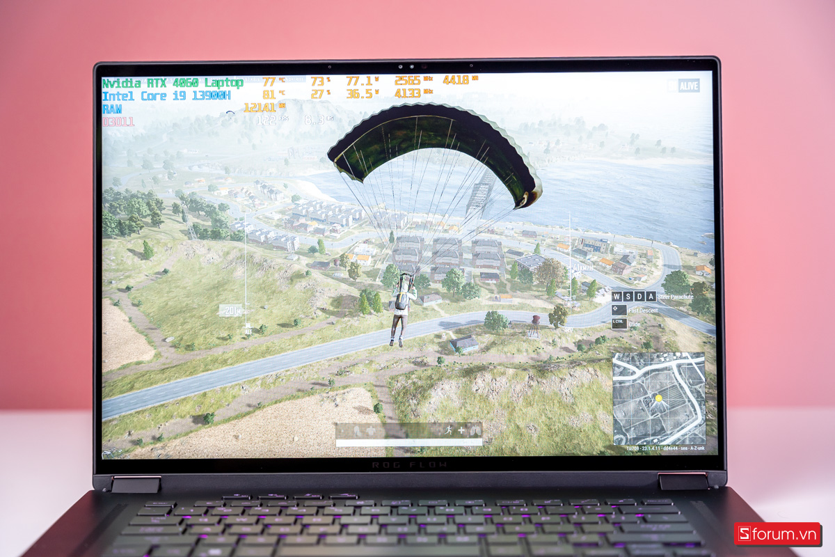 Tuy nhiên về tần số làm tươi 240Hz thì mình thực sự vẫn hơi lần cấn, tất nhiên cao là tốt nhưng ROG Flow X16 không thực sự sinh ra cho gaming, 144 hoặc 165Hz là đã đủ cho trải nghiệm tốt rồi. Mình thậm chí còn ưu tiên màn hình chỉ 90Hz hoặc 120Hz, khi đó dù có cấp nguồn hay không vẫn tự tin giữ nguyên mức khung hình mà không quá lo lắng về pin.