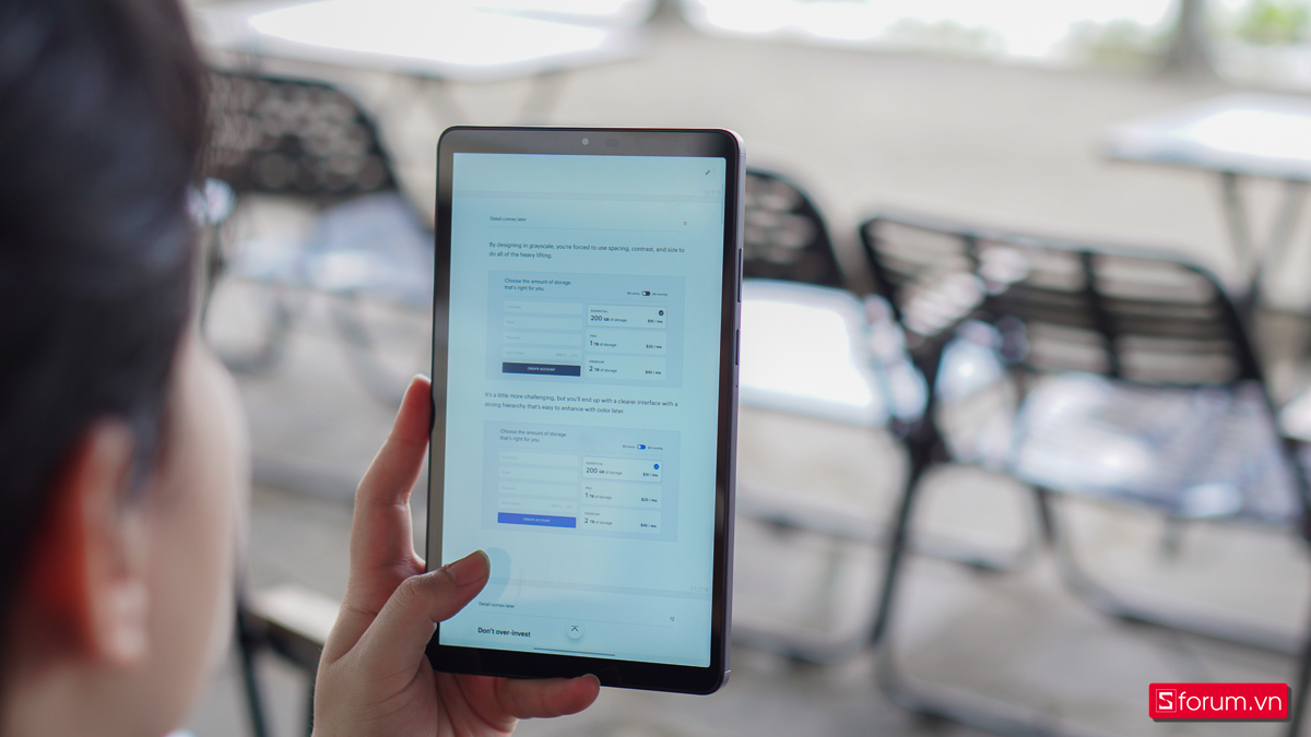 Ngay từ lần đầu tiên được trên tay, Samsung Galaxy Tab A11 cho mình một cảm giác cầm khá thoải mái, với kích thước 211 x 124,7 x 8 mm và trọng lượng chỉ khoảng 335g cực kì nhỏ gọn và không kém phần mỏng nhẹ, trải nghiệm Samsung Galaxy Tab A11 khi cầm trên tay gần như tương tự mình đang cầm một quyển sách nhỏ.