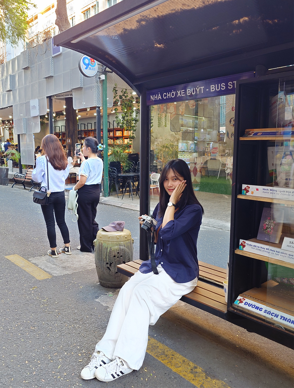 Như mình có chụp ảnh cho bạn gái ở đường sách, khung cảnh nơi đây khá là đông đúc người nên để chụp được một bức ảnh “sạch” thì mình cũng phải đợi khá lâu để căn được khoảnh khắc lý tưởng. Thế nhưng Xperia 1 V lại không giúp mình tận dụng được khoảnh khắc ấy, mình phải tốn thêm vài giây để tùy chỉnh các thông số và điều này làm mình khá là bực.
