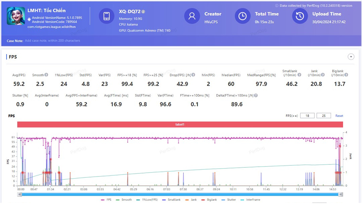 Còn về khả năng tối ưu chơi game, Xperia 1 V vẫn thể hiện khá tốt vai trò là một chiếc máy cấu hình cao. Mình có thử chơi qua Tốc Chiến và cả PUBG Mobile ở cấu hình cao, trải nghiệm ở cả hai tựa game này đều rất tốt, mọi thứ vẫn rất mượt mà, không giật lag, chơi lâu liên tục trong 1 tiếng đồng hồ thì máy cũng chỉ ấm nhẹ chứ không quá nóng.