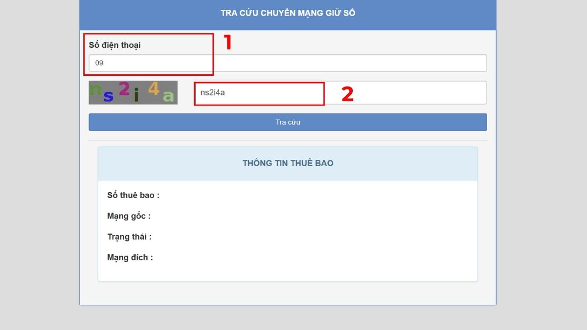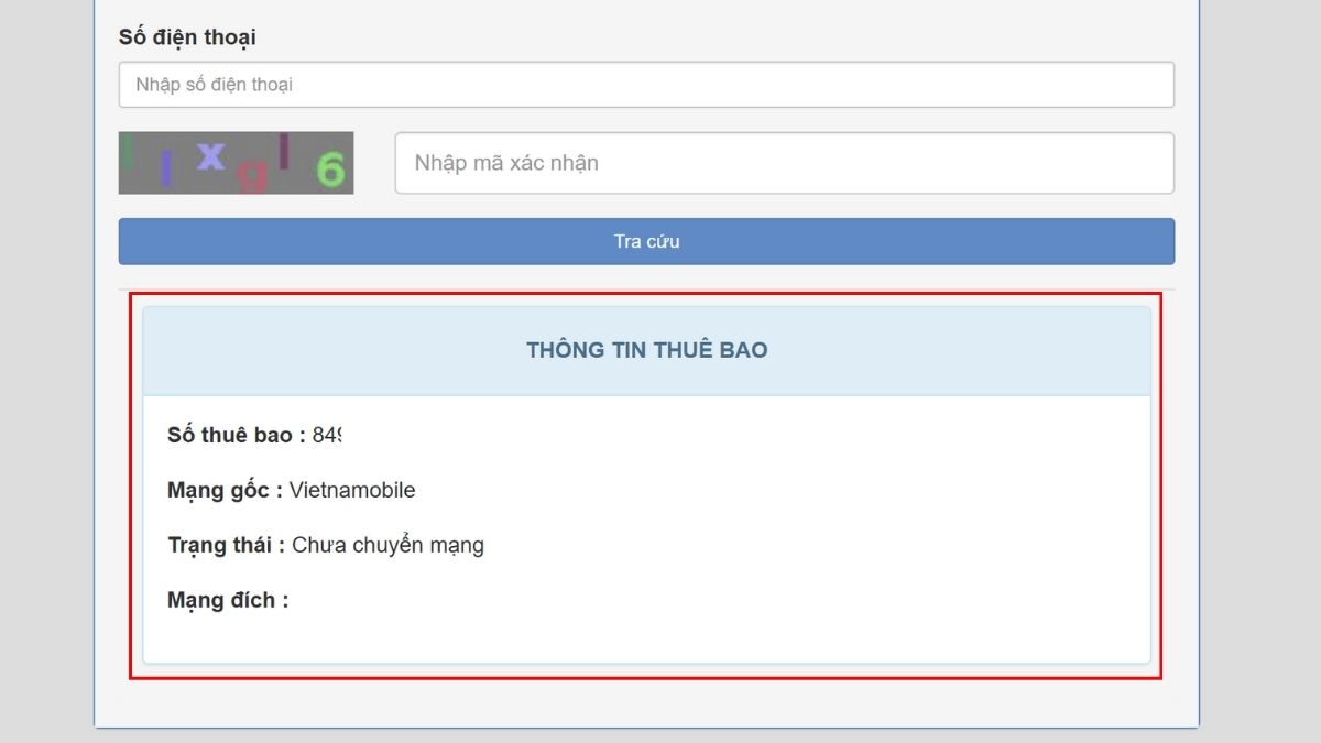 - Điền số điện thoại cần tra cứu vào ô Số điện thoại, nhập mã xác nhận rồi nhấn Tra cứu.