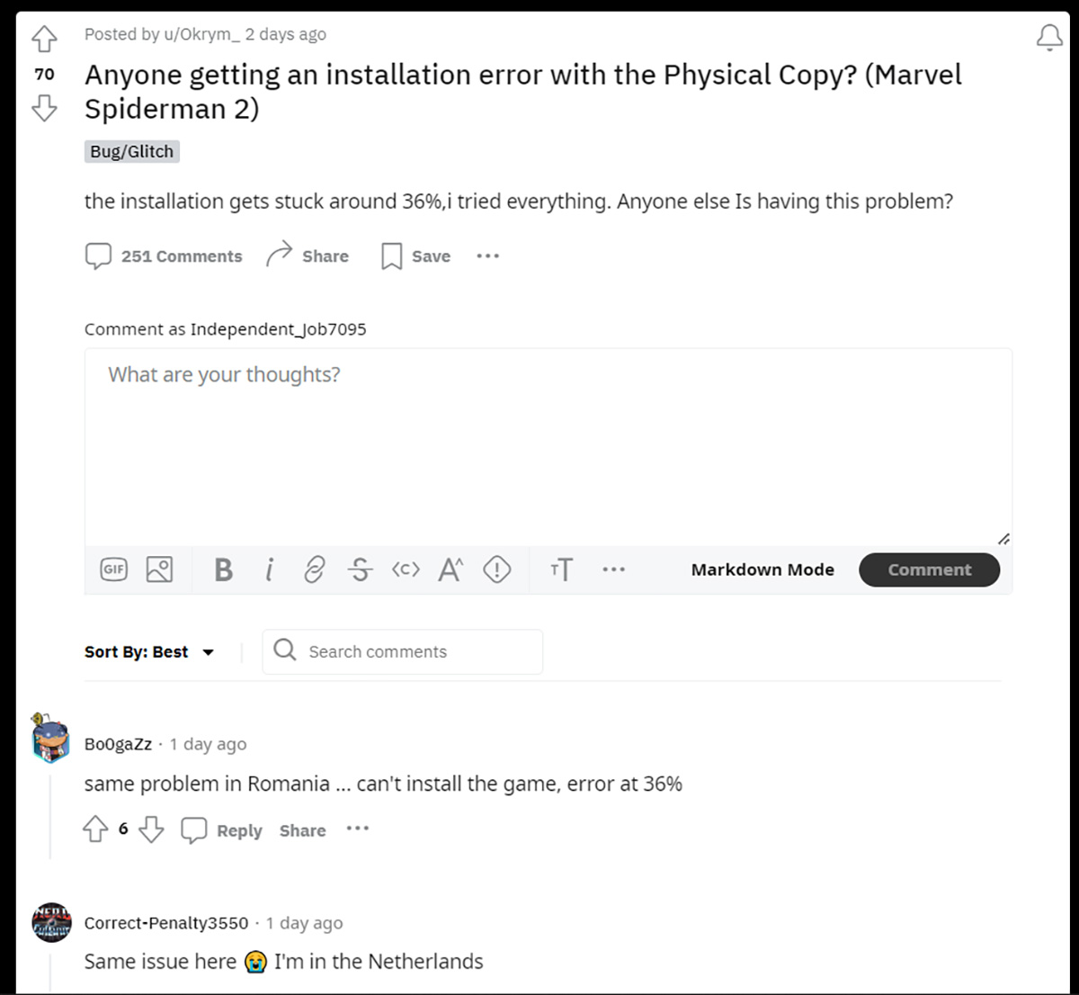 Một cơn ác mộng của thời sử dụng CD/DVD để cài game chính là việc chiếc đĩa bị hỏng khiến tiến trình cài bị kẹt giữa chừng. Nếu do DVD bị trầy xước vì cũ thì việc lau chùi lại sẽ giải quyết được, nhưng nếu là lỗi do dữ liệu ghi trên đĩa bị hỏng từ lúc ghi ra thì phải bỏ hoàn toàn chiếc đĩa đó. Đến năm 2023 với việc cài game từ mạng internet phổ biến mạnh, tưởng chừng cơn ác mộng đó chỉ còn là quá khứ thì nó lại xảy đến với người chơi Marvel's Spider-Man 2.