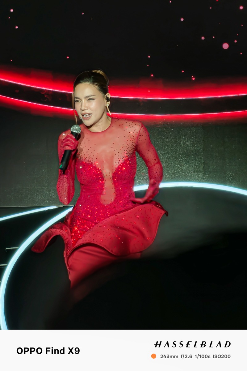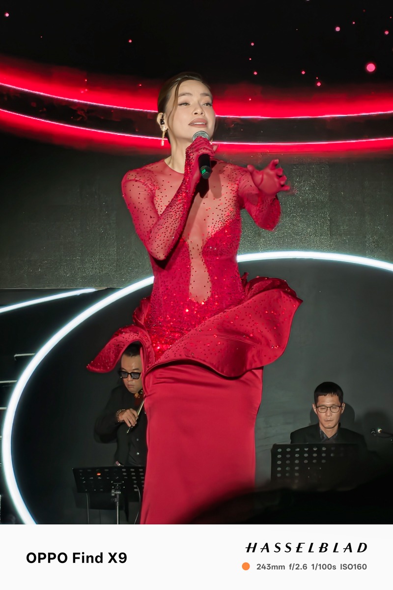 Trong suốt đêm sự kiện, Find X9 Series ghi lại trọn vẹn các tiết mục với nhiều góc chụp khác nhau, từ toàn cảnh sân khấu đến cận cảnh nghệ sĩ. Đặc biệt, Camera Tele Hasselblad 200MP trên Find X9 Pro kết hợp ống kính tăng tiêu cự Hasselblad cho khả năng zoom quang học tương đương 10x (230mm), giúp người dùng vẫn có thể bắt rõ nét khuôn mặt, thần thái và trang phục biểu diễn dù đứng ở khoảng cách xa.